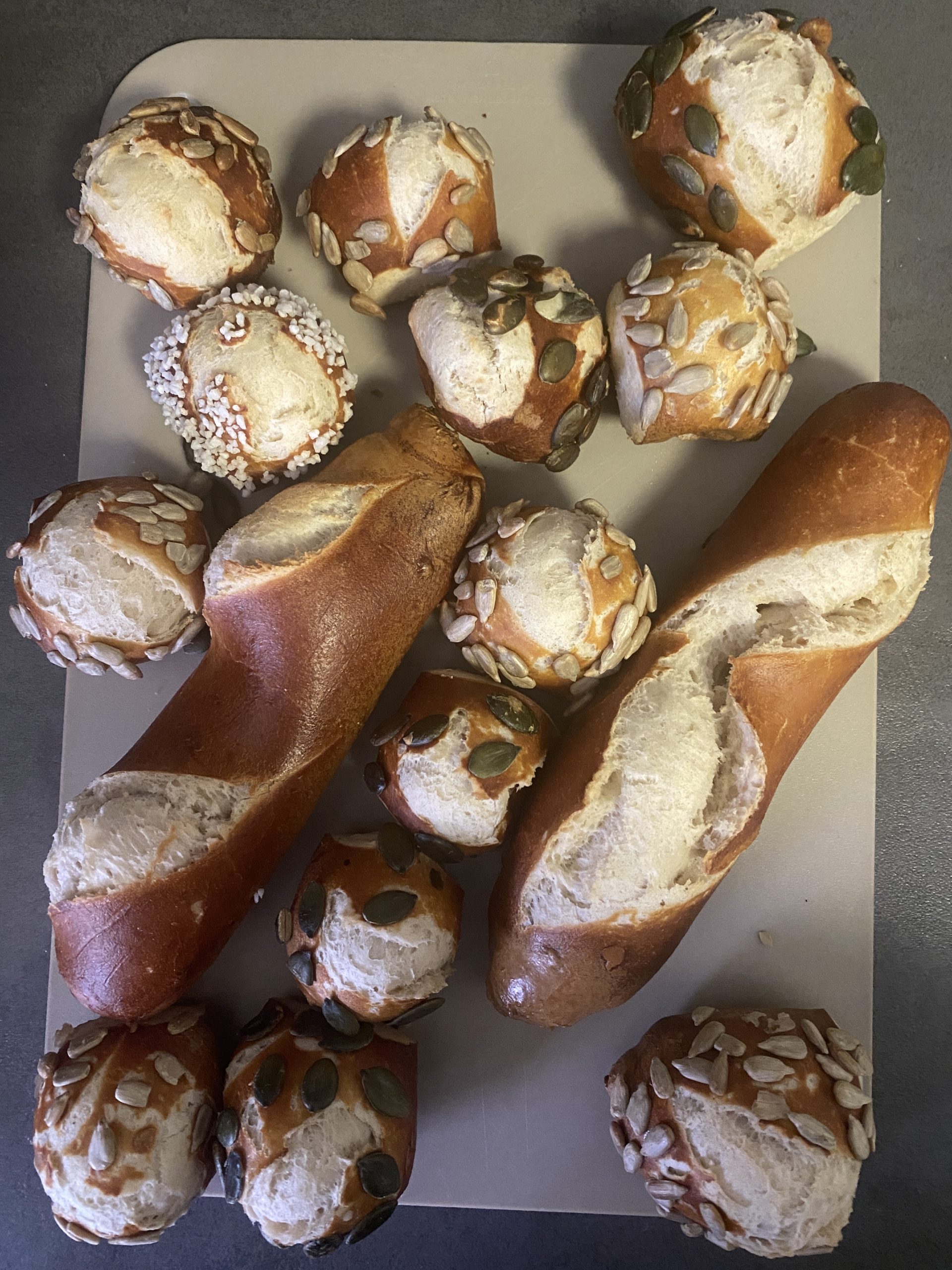 Tipp: Ich habe zusätzlich noch ganze Laugenstangen dazu gelegt. Die Backzeit war mit den kleinen gleich.
